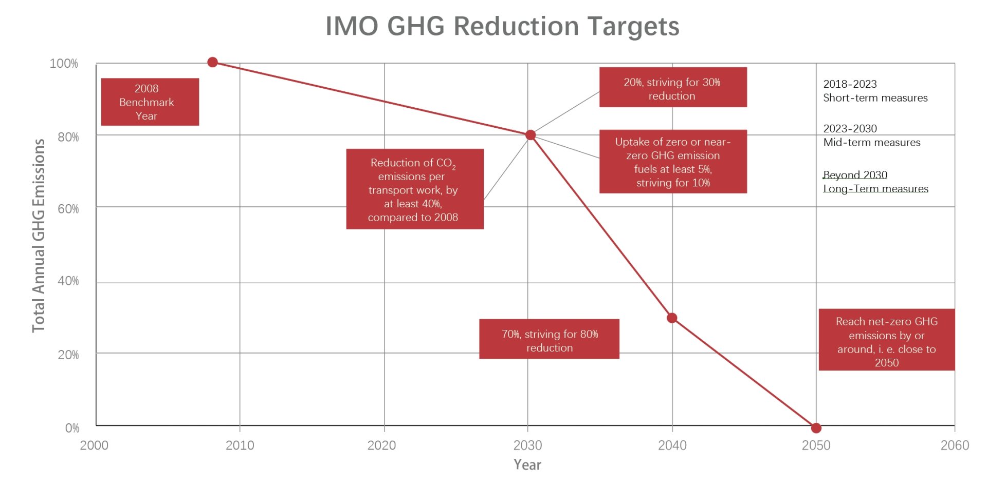 2. 截至2040年,航運溫室氣體減排較2008年標準實現至少70%,爭取實現80%。